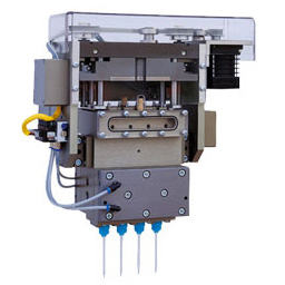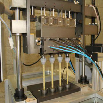 多嘴式活塞注胶头由数个在功能上互相连接的单个注胶头出料口组成。每个出料口都由单独的进料/出料阀控制,一个共用的上下运动机构保证了各出料口之间的绝对同步和一致的注胶动作。可以通过控制单个阀门来关闭一个或多个出胶嘴,这样在有些工件夹具上产品空缺时操作更灵活。